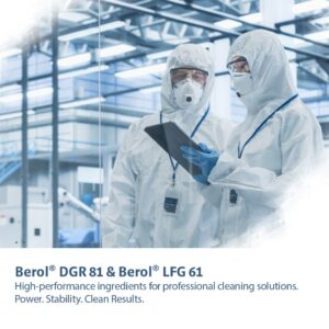 For certain cleaning applications a high amount of caustic is required for effective cleaning. Berol LFG 61 and Berol DGR 81 help formulators develop high